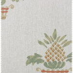 Stencilled floors were a popular decorative touch in early colonial homes, as was the pineapple motif: not only a symbol of hospitality, the combination of the leaf crown with the spiralling scales of the fruit has always made for a stylish decorative device. Here we have placed it in a basket, painted in a naive way, with plenty of space to give an open layout to the design.