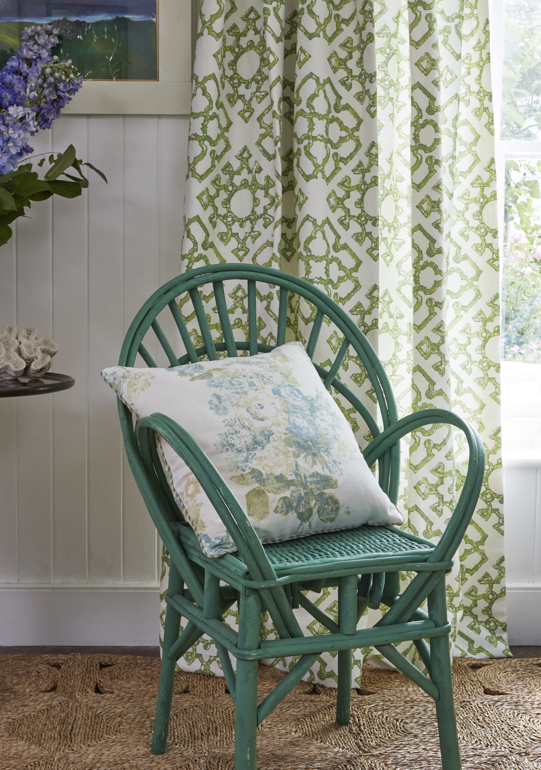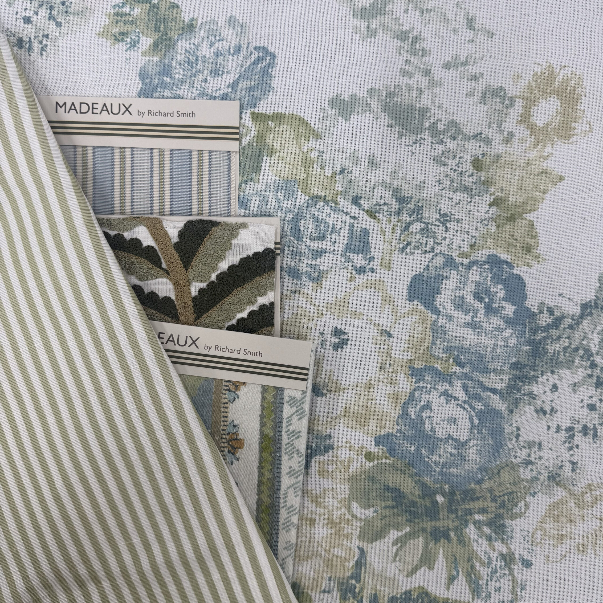 Covehurst Stripe 02 Celery/Seafoam, Fernerie 01 Fernerie, Simla 01 Blue and Audrey Silk 02 Celery