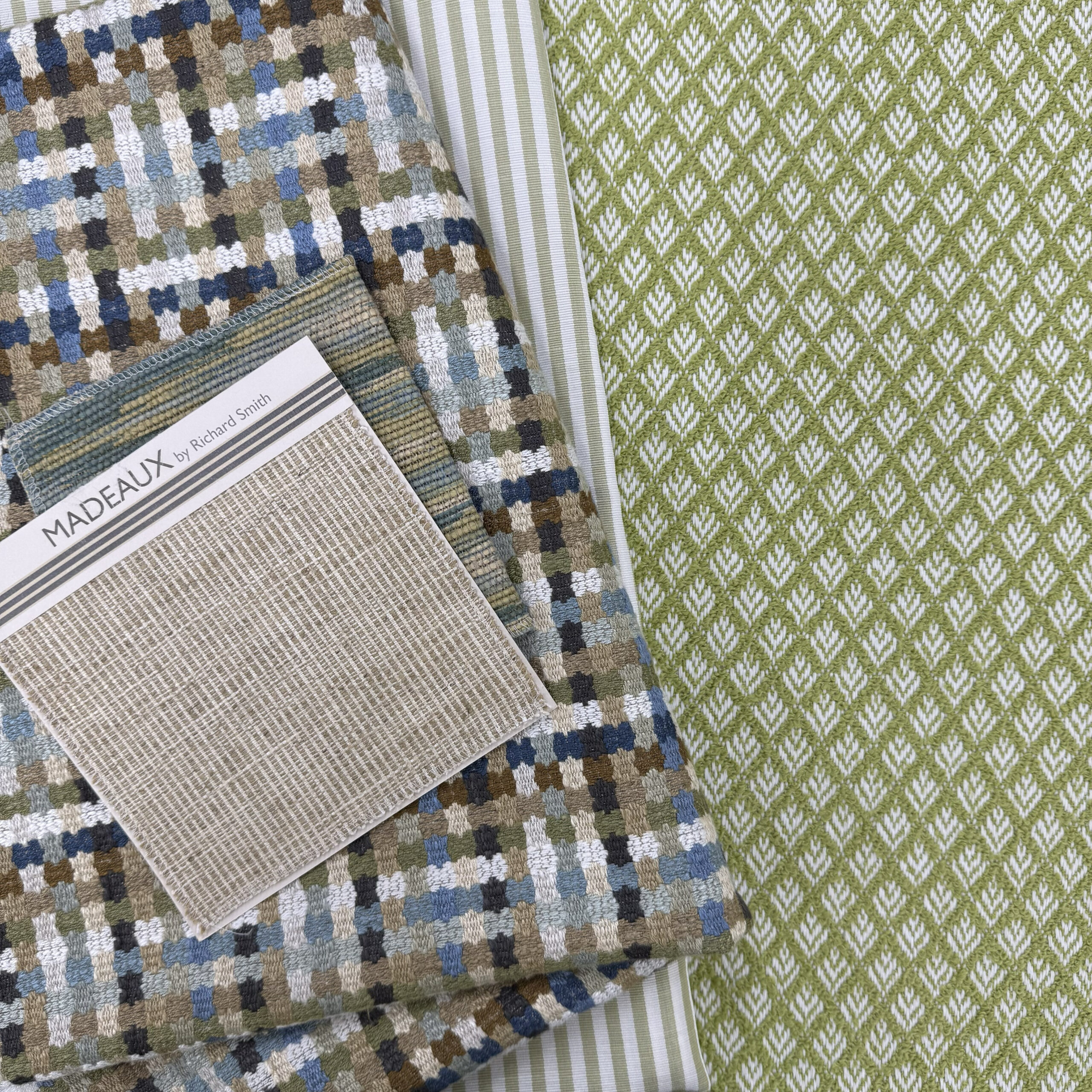 Audrey Silk 02 Celery, Hotchpotch 02 Ocean Dune, Ziggery 01 Peacock and Perdita 03 Honey