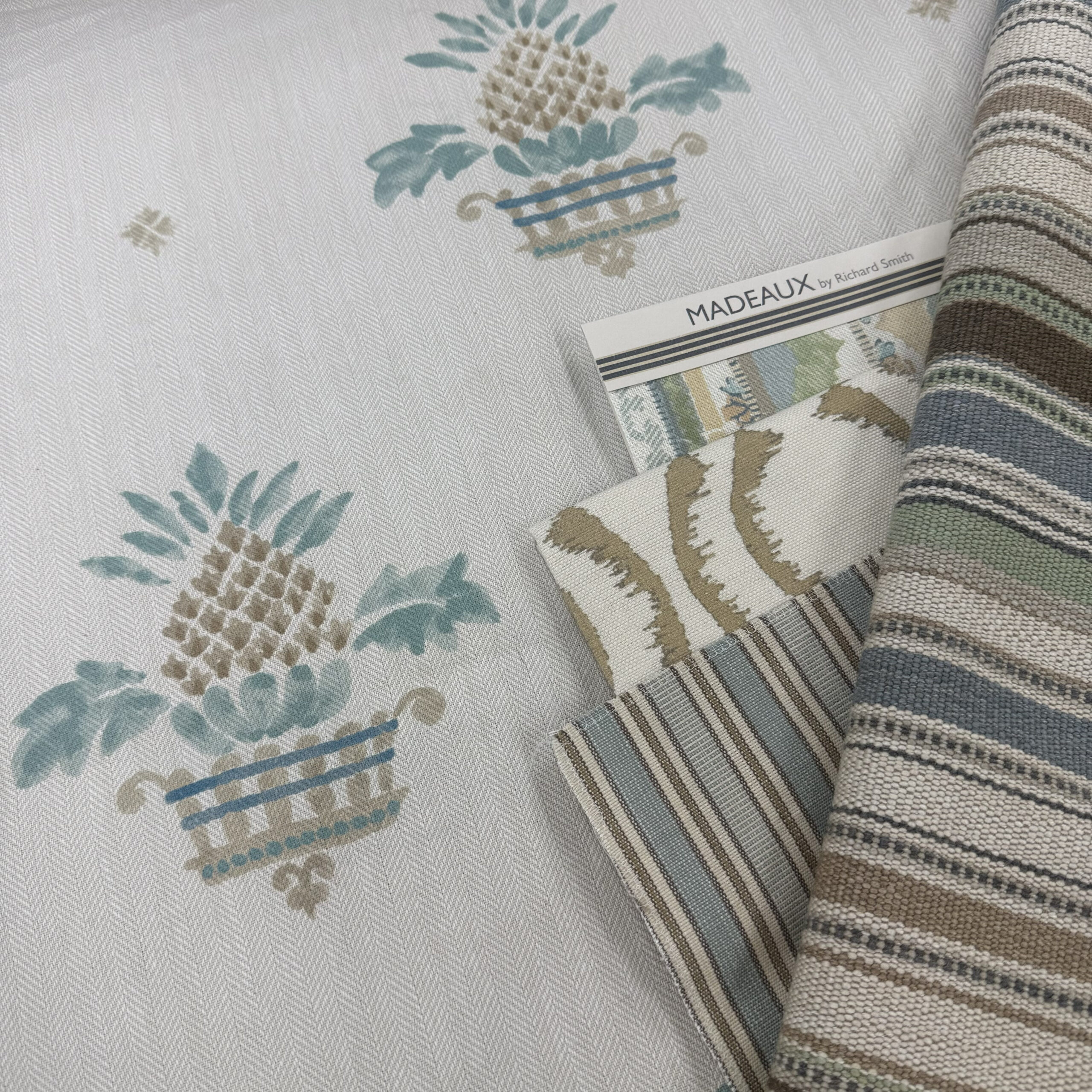 Simla 01 Blue, Zogee 01 Sand, Covehurst Stripe 02 Celery/Seafoam and Jajim 05 Mineral